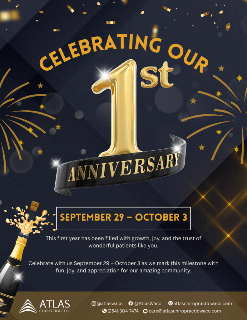 Atlas Chiropractic – celebrating one year of caring for our community, one healing story at a time.